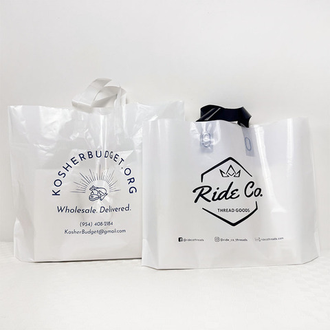 Sac en polyéthylène personnalisé Sac à main en PE-BD à poignée souple avec anneau Sac en plastique à provisions avec son propre logo d'emballage de vêtement